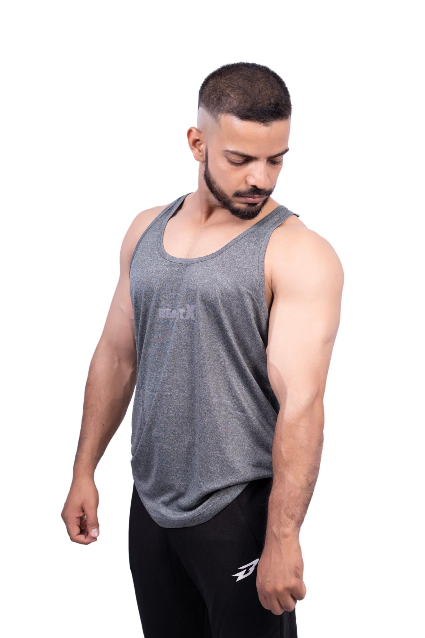 BeastX Gym Stringer AlphaCut – Dri-fit Fabric | Muscle Fit | Flex-Ready Gymwear | Heather Grey Colour