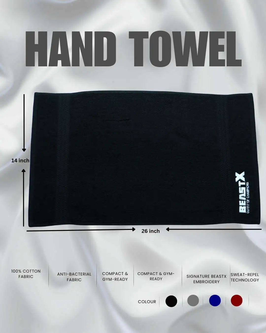 Beastx Towel – Premium 100% Cotton Gym Hand Towel for Men | Quick Dry & Anti-Bacterial – BLACK